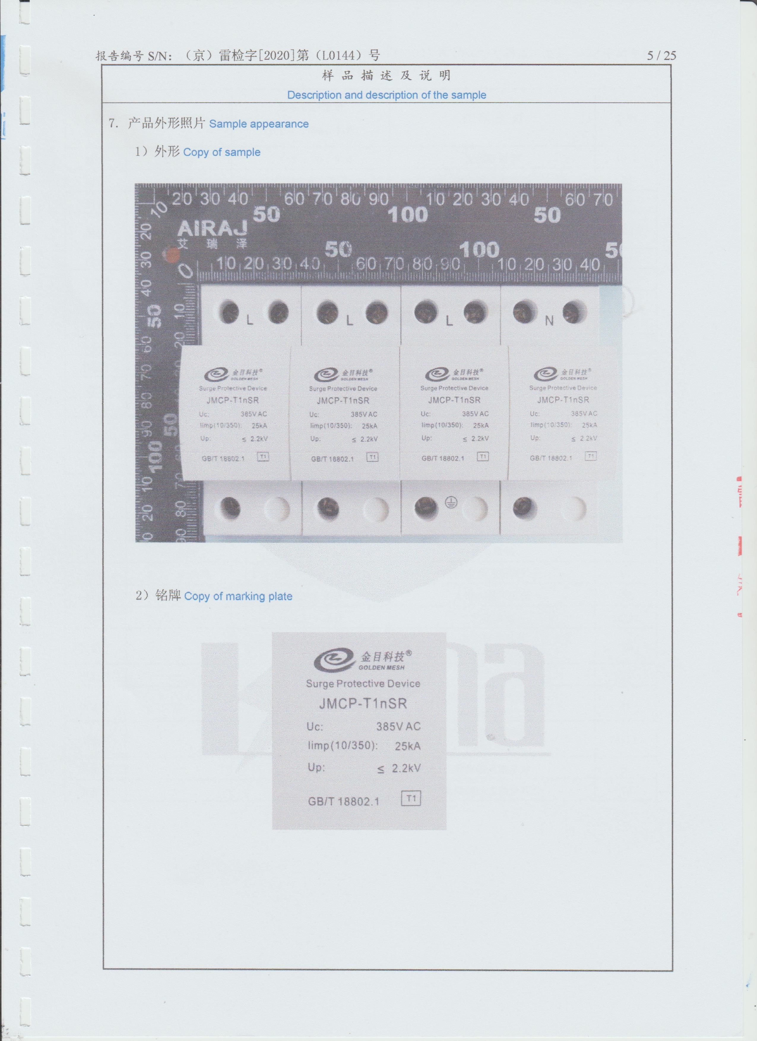 JMCP-T1nSR检测报告(京雷检中心2020)