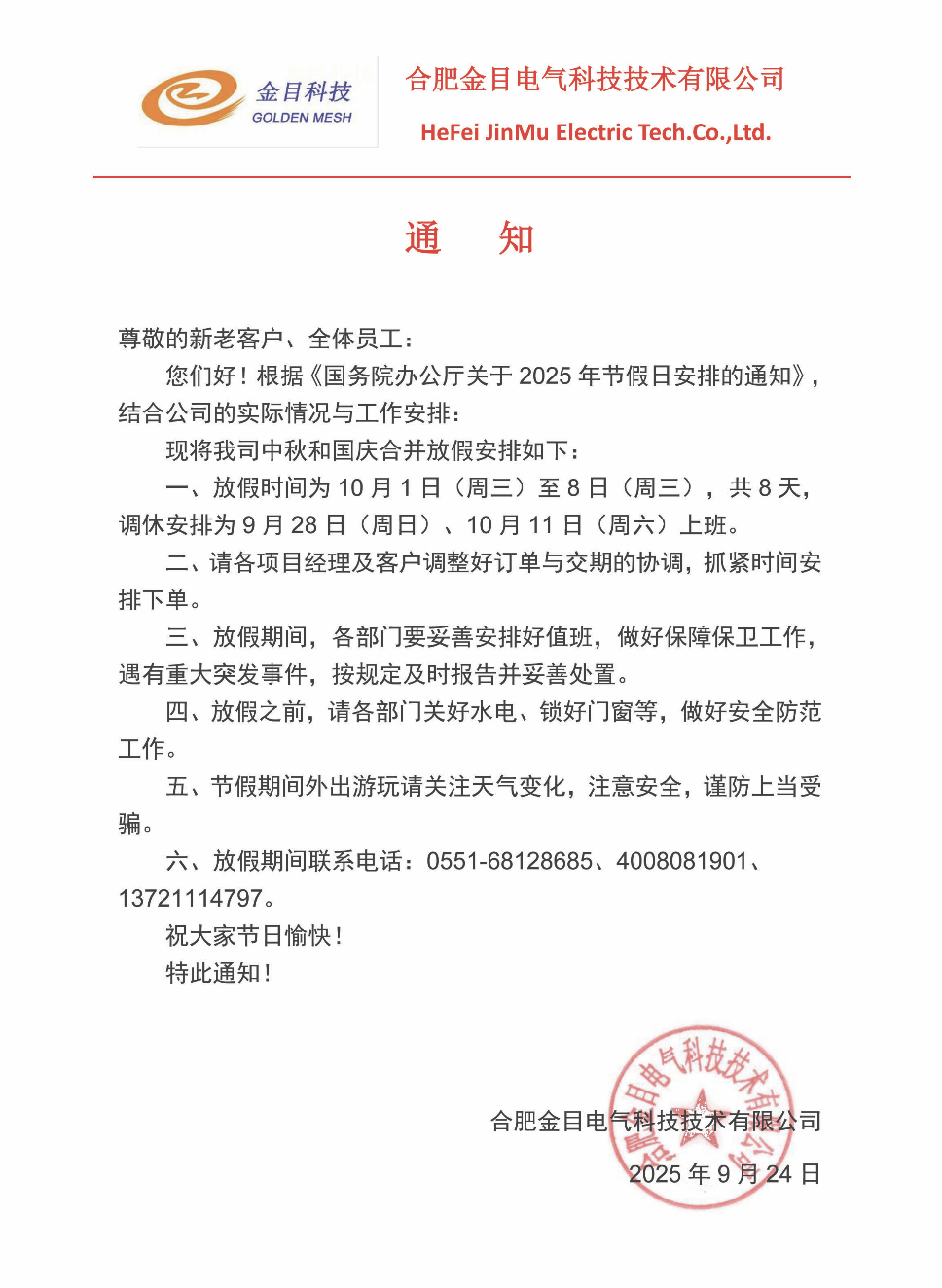 您们好!根据《国务院办公厅关于2025年节假日安排的通知》,结合公司的实际情况与工作安排: