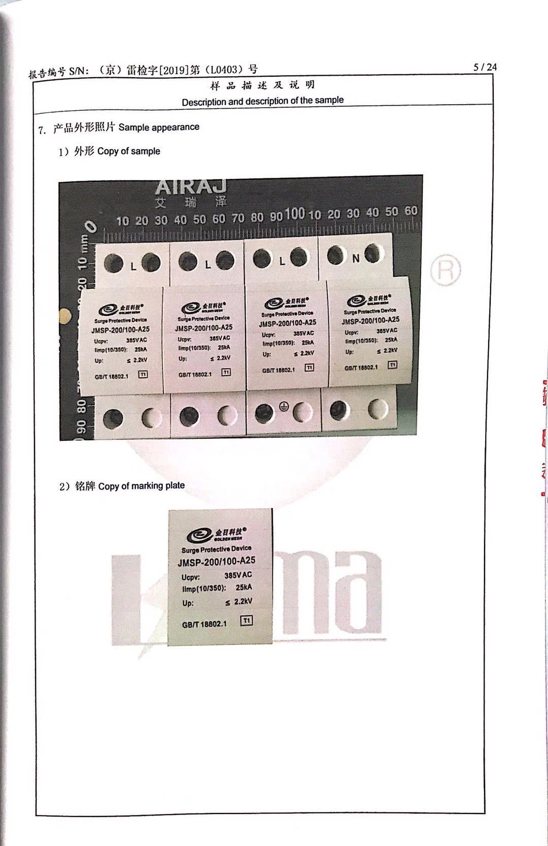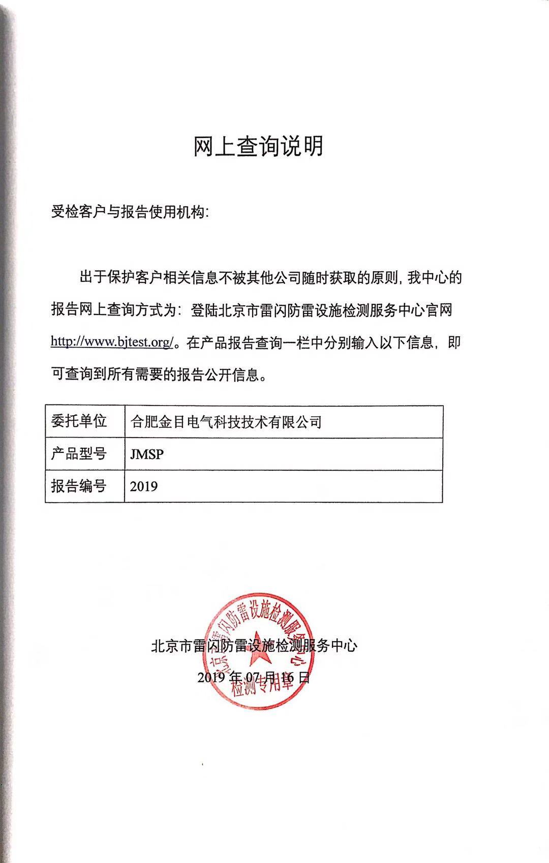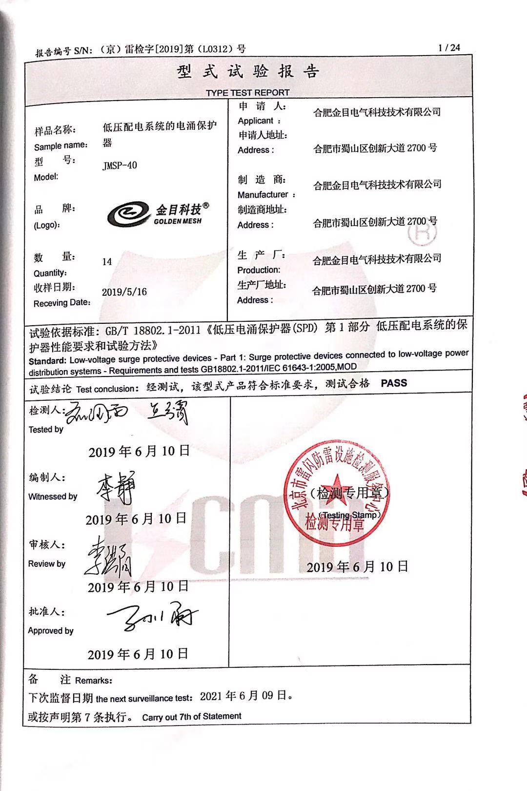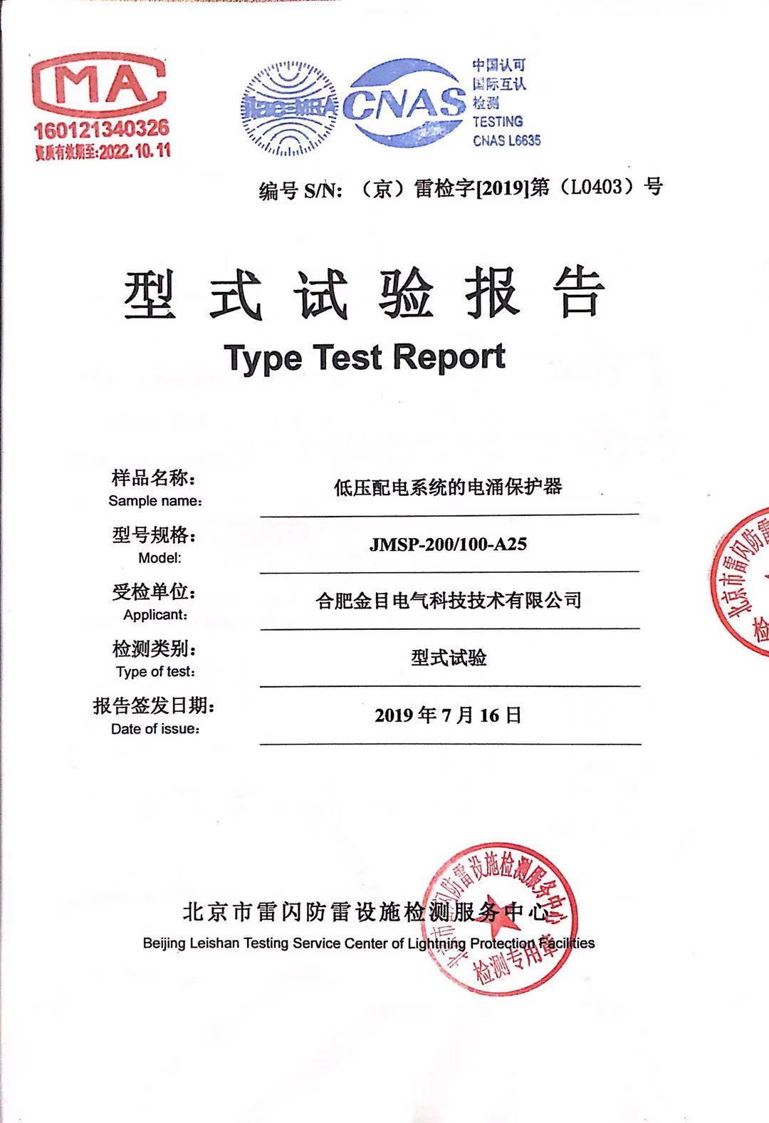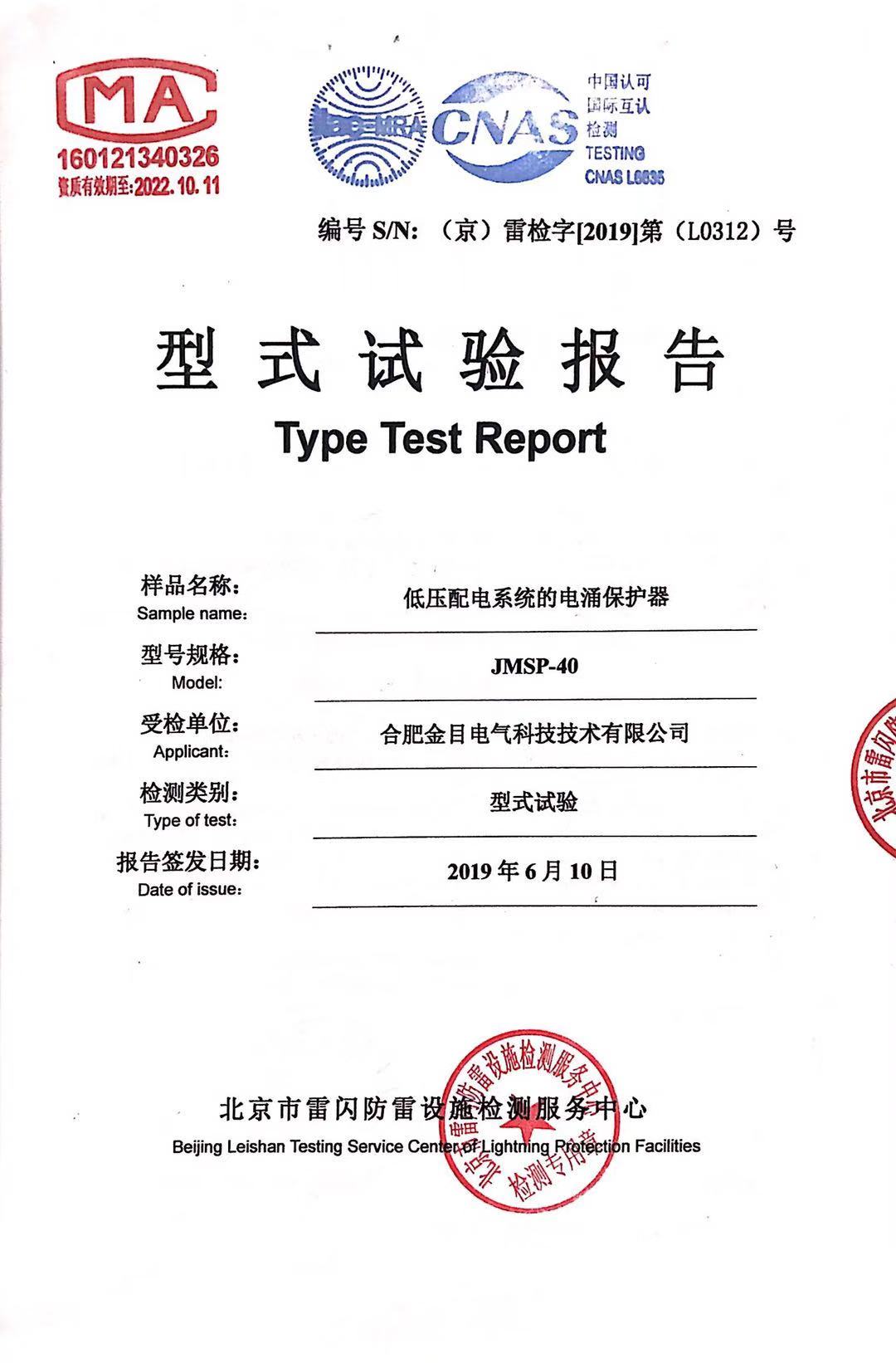 JMSP-40、100浪涌保护器检测报告新